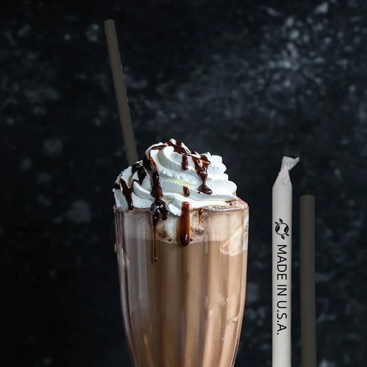 Wrapped 7.75'' x 0.24'' Compostable Black Jumbo Drinking Straws - 2,500 Count
