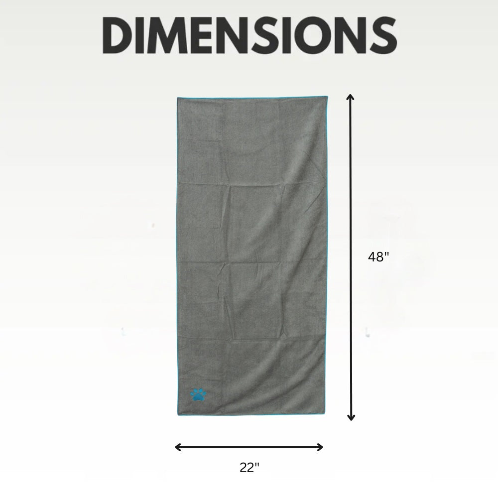 Country Living Large Gray Microfiber Dog Bath Towel with Teal Embroidered Paw Print